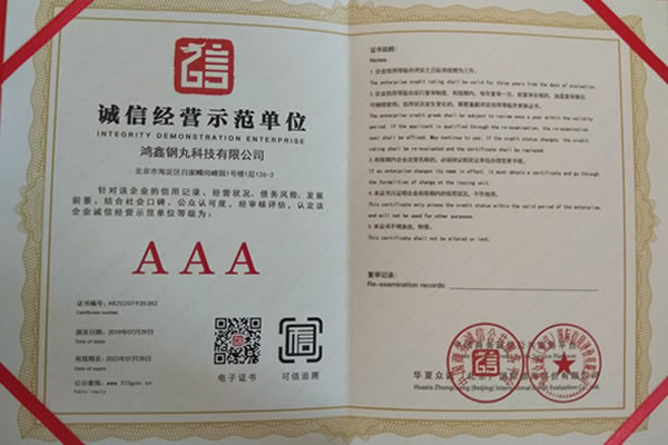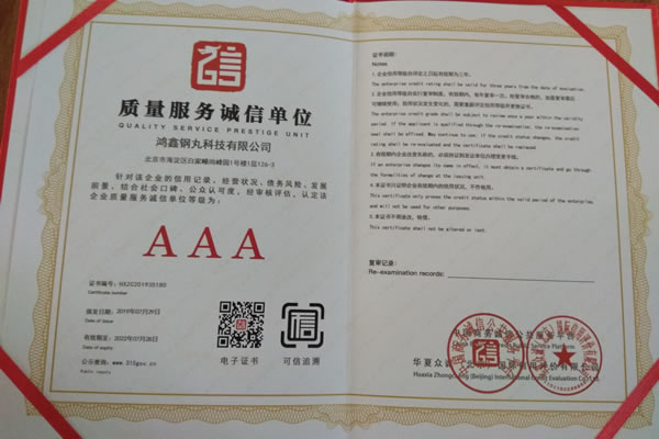 公司所有產(chǎn)品均通過ISO9001 **質(zhì)量認證,2014年更獲得了第三屆中國金屬磨料行業(yè)具有影響力品牌-華尊獎